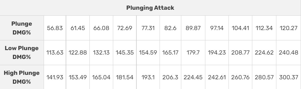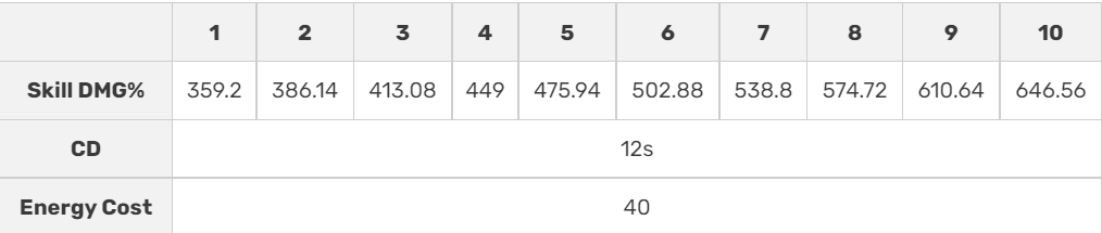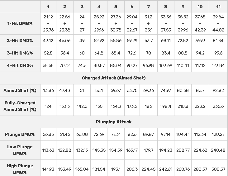 Her Normal and Charged Attacks all have fairly average scalings. This Talent will generally only be used as a main DPS.