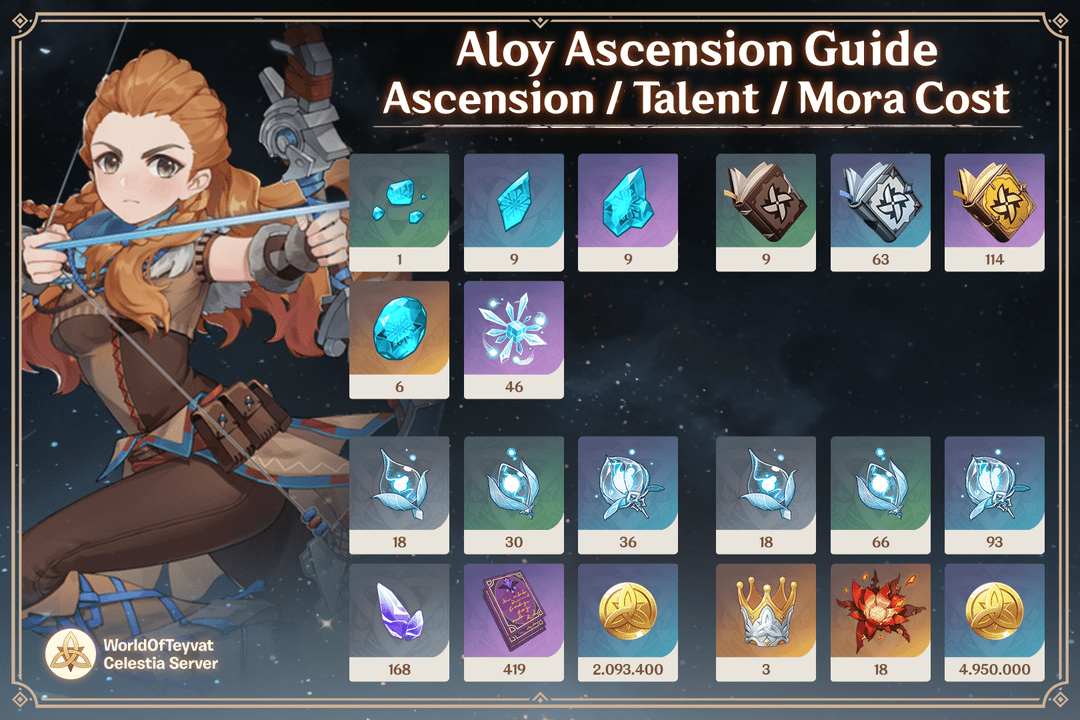 - Ganyu’s playstyle differences means she shares nothing in common with Aloy besides Element and weapon type.