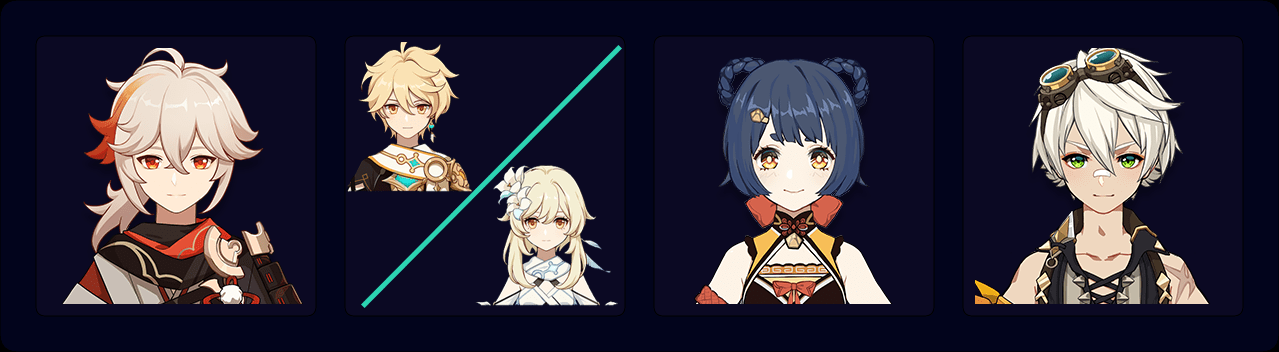 One of the strongest teams that Anemo Traveler can be in, they take the usual Venti slot and buff the team more through their extra RES Shred but sacrificing the Energy that Venti provides (assuming pre-C6 Venti). Xiangling is the off-field DPS, getting buffs from Bennett’s Burst, Kazuha’s A4 Passive, 4-Piece Viridescent Venerer, and Anemo Traveler’s C6. Overall, these characters benefit from each other’s buffs, spend roughly the same amount of time on-field, and catch their own particles (except for Xiangling, she gets Bennett’s particles).