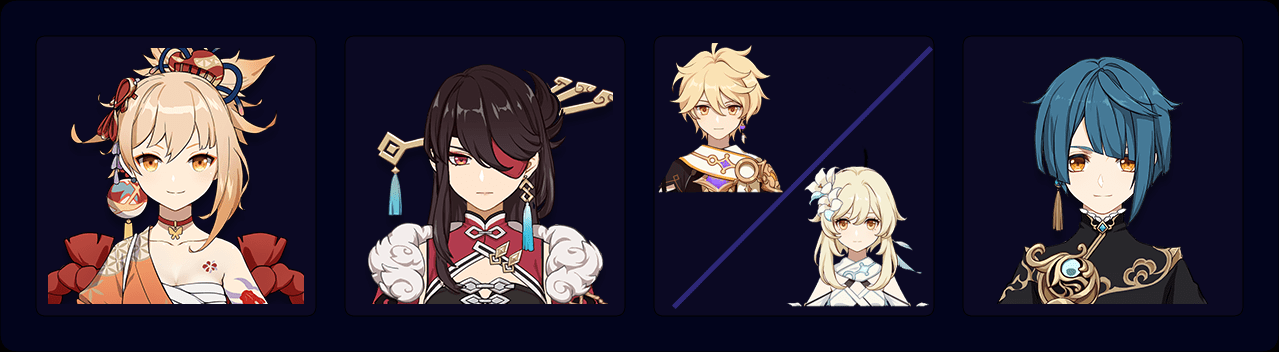 Yoimiya, Beidou, Traveler, Xingqiu:
