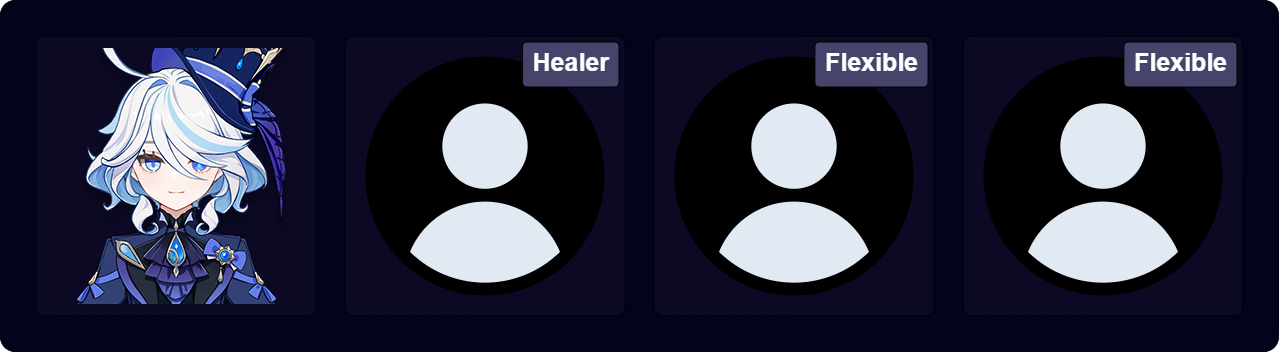 Furina necesita equipos compuestos en torno a ella, poniendo un énfasis significativo en el healer del equipo. Aparte de un healer adecuado, los dos espacios restantes pueden ser ocupados por DPS o soportes ofensivos. Usualmente es redundante traer otro healer; los que brindan escudos aún pueden ser útiles para unidades propensas a ser interrumpidas pero no son ideales.
