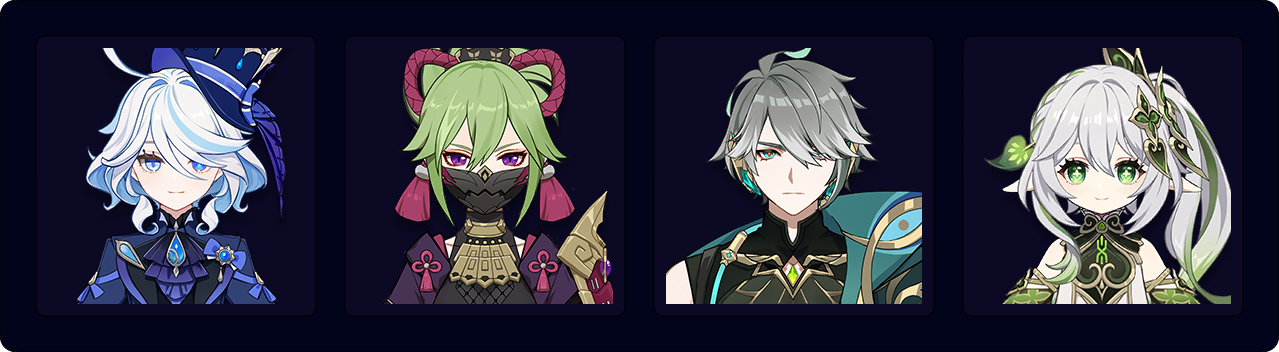 Furina ED Q > Nahida E Q > Baizhu N1 EQ > Cyno EQ N1 E 6[N4E]¹