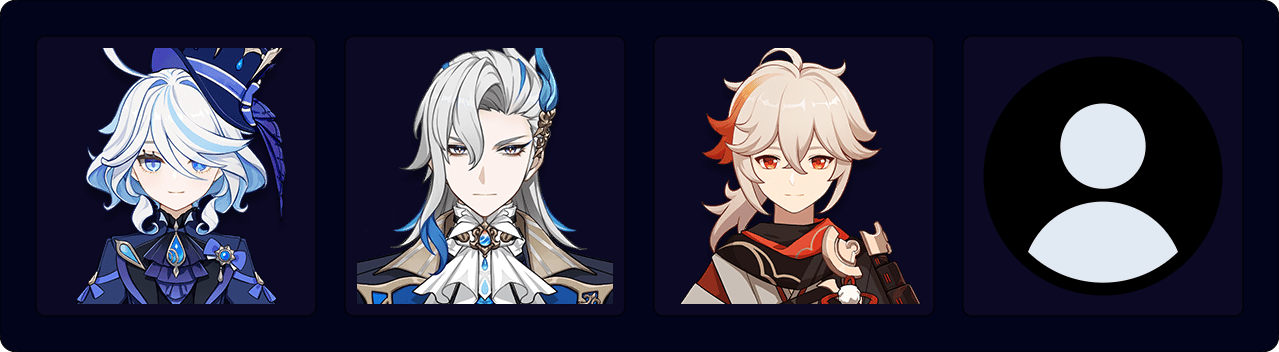Un equipo de Congelados que aún tiene un gran impacto contra Jefes. Wriothesley recibe múltiples bufos mientras que Furina y Yelan también infligen un considerable daño desde fuera del campo. Mika proporciona una buena curación para mantener al equipo en buen estado y un aumento de la Velocidad de Ataque que es útil para el estilo de juego centrado en Ataques Normales de Wriothesley.