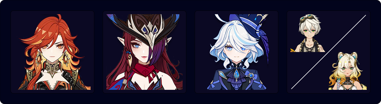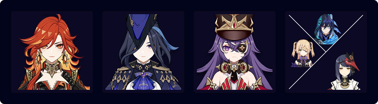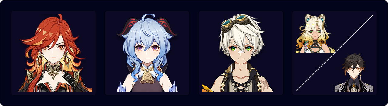 ![]() ★ Wriothesley | ![]() ★ Ganyu | ![]() Ayaka | ![]() Rosaria |