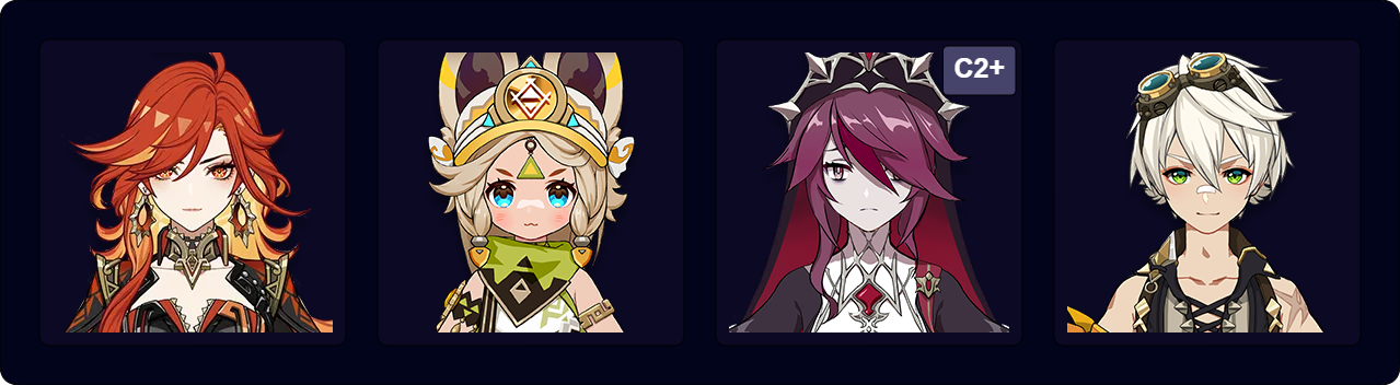 Como Mavuika puede encajar en bastantes equipos en su estilo de juego fuera de campo, en el segmento a continuación solo se destacarán algunos posibles compañeros. Para más información sobre la construcción de equipos, visita la guía respectiva del personaje en cuestión.