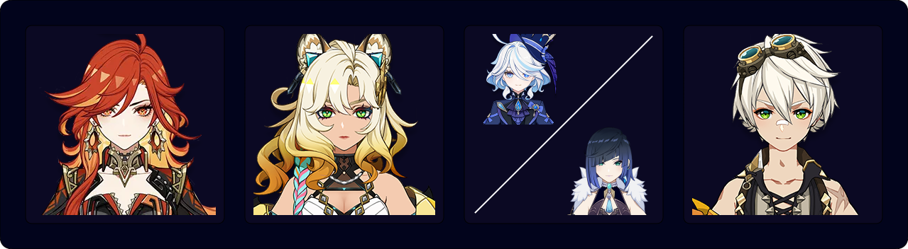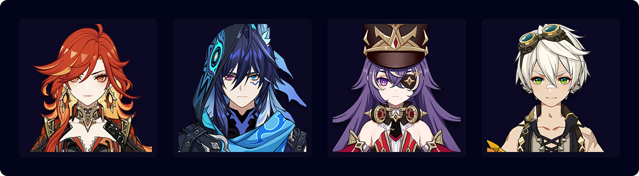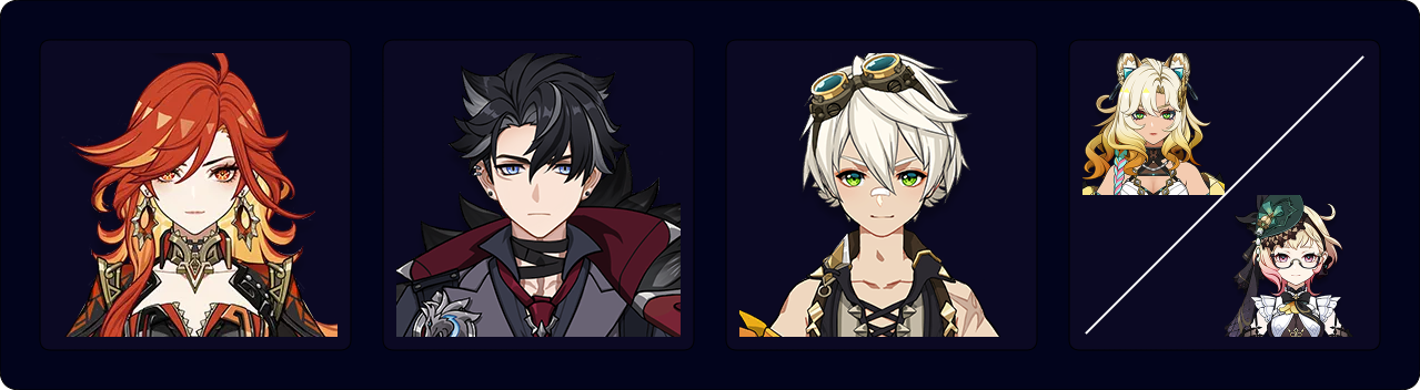![]() ★ Bennett | ![]() ★ Chevreuse | ![]() Dehya | ![]() Thoma | ![]() Xiangling |