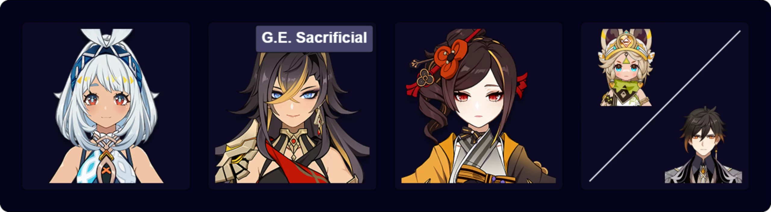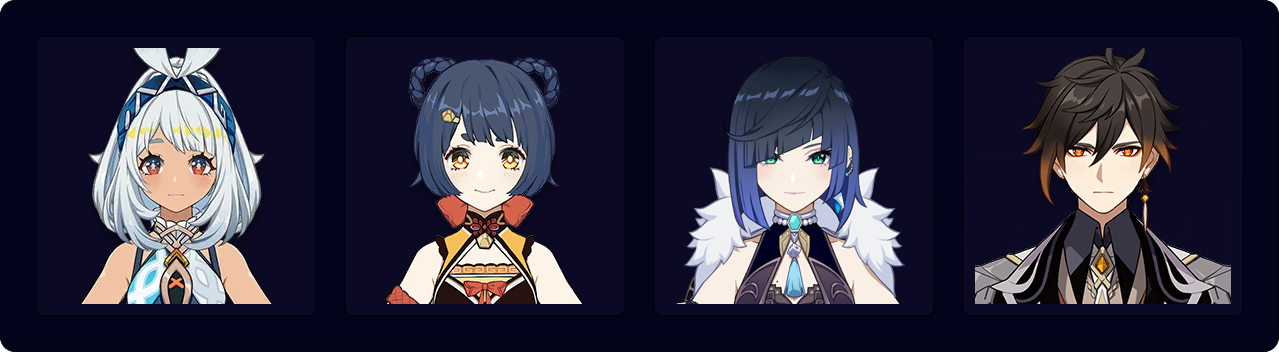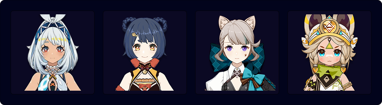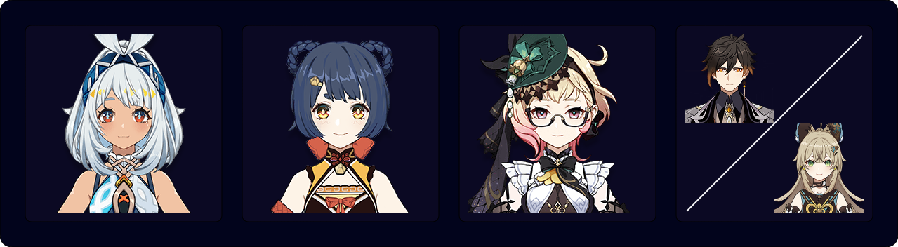 ![]() Yelan | ![]() Furina | ![]() Candace | ![]() Mona |