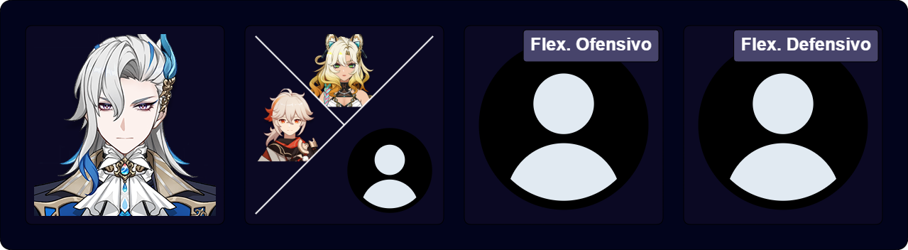 ![]() Furina | Furina aporta una numerosa cantidad de Bono de Daño y un daño personal respetable. Las fluctuaciones de la vida de Neuvillette pueden stackear algarabía por sí mismas, pero un healer puede aportar comodidad. |