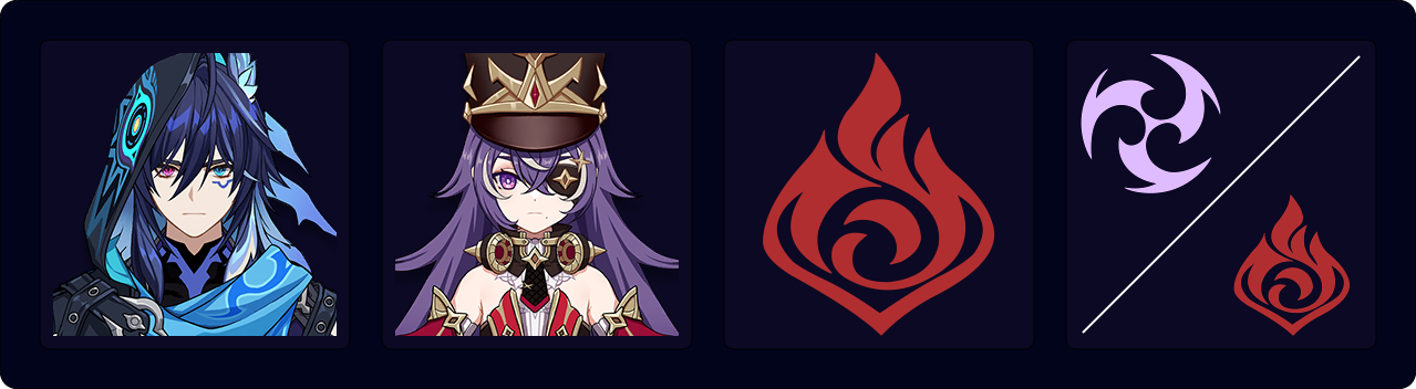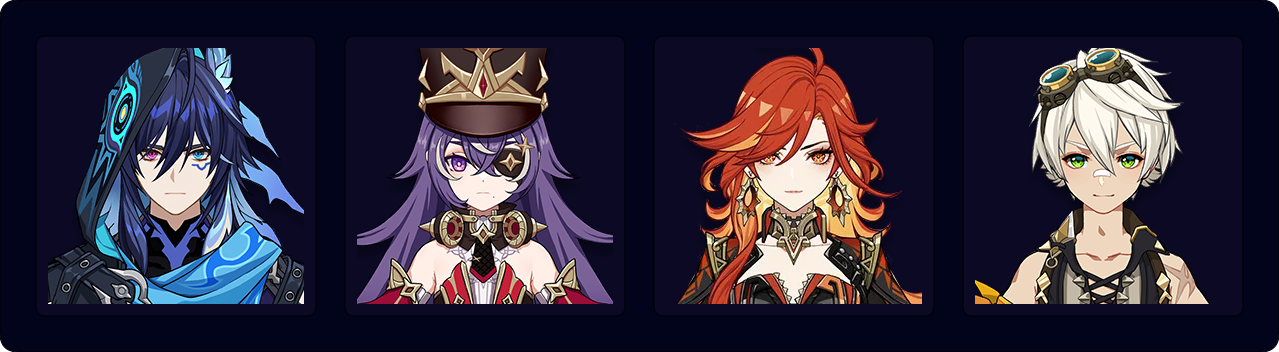![]() Mavuika | ![]() Arlecchino | ![]() Lyney | ![]() Xiangling | Chasca |