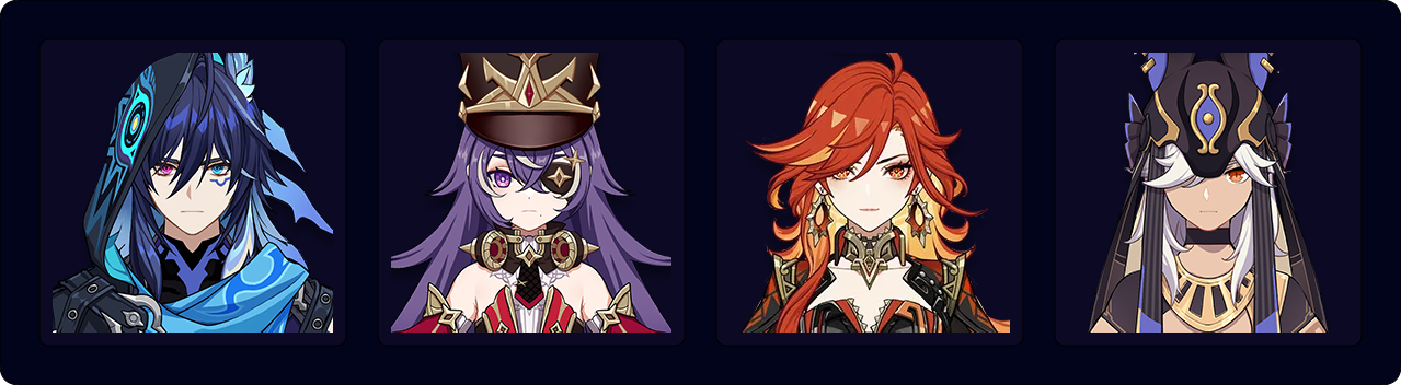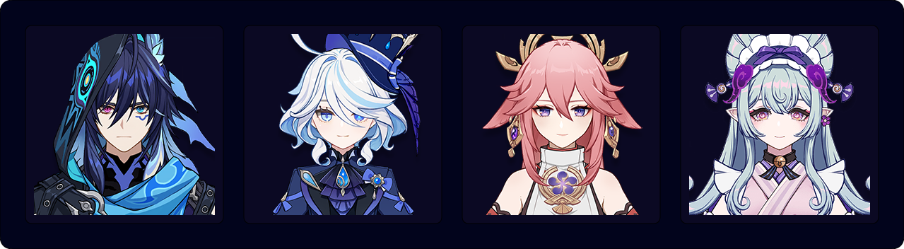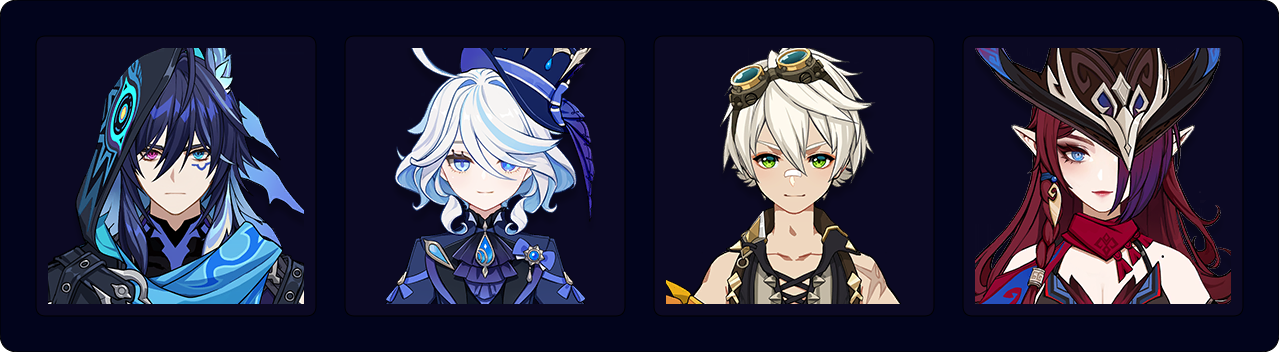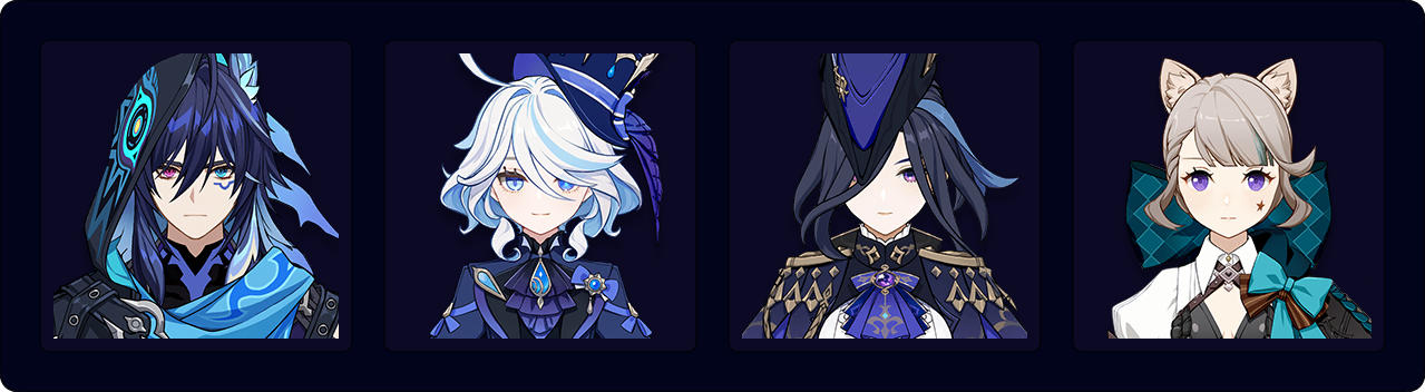 ![]() Furina | ![]() Sigewinne | ![]() Xingchiu | ![]() Yelan |