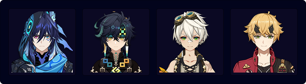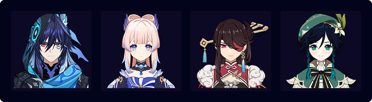 ![]() Neuvillette | ![]() Ayato | ![]() Kokomi | ![]() Barbara |
