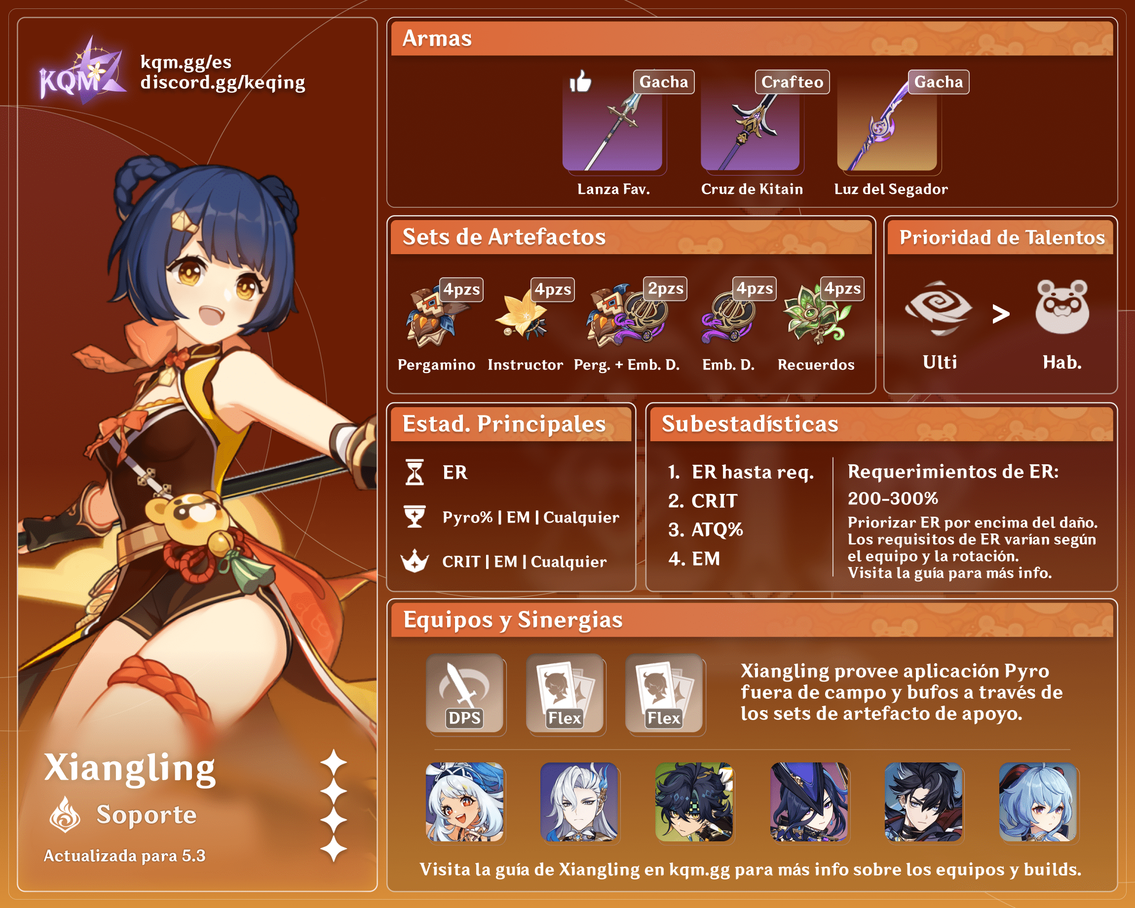 Xiangling es un personaje Pyro de Lanza de 4 estrellas en Genshin Impact quien provee un excelente daño Pyro fuera de campo y aplicación elemental. Aprende acerca de las mejores builds, armas, artefactos y equipos de Xiangling en esta guía.