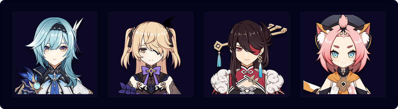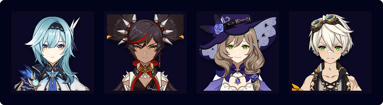 A popular variation that allows consistent Energy regeneration for Eula. The damage ceiling of this team is not the highest, but it is consistent, and the barrier of entry is quite low. Recommended if you just started playing Eula.