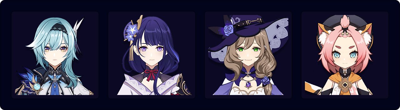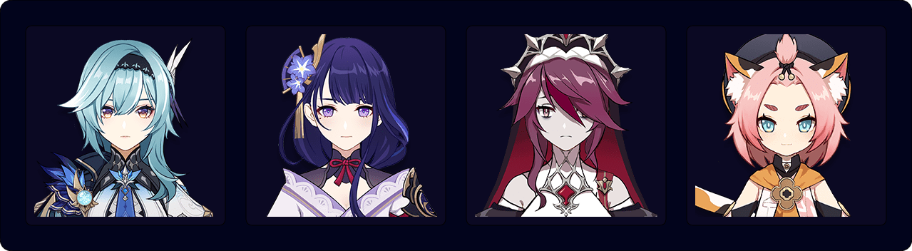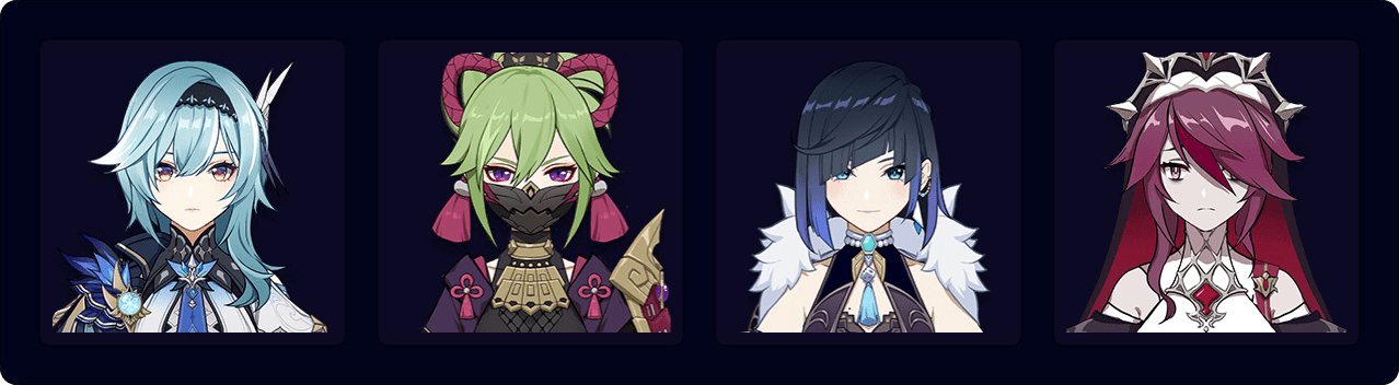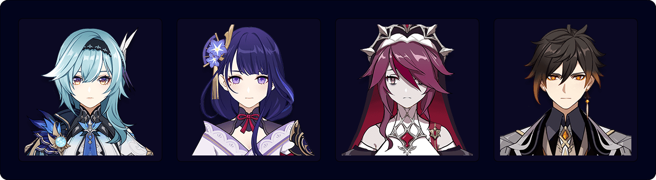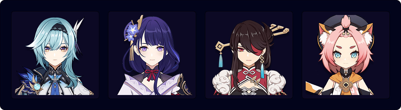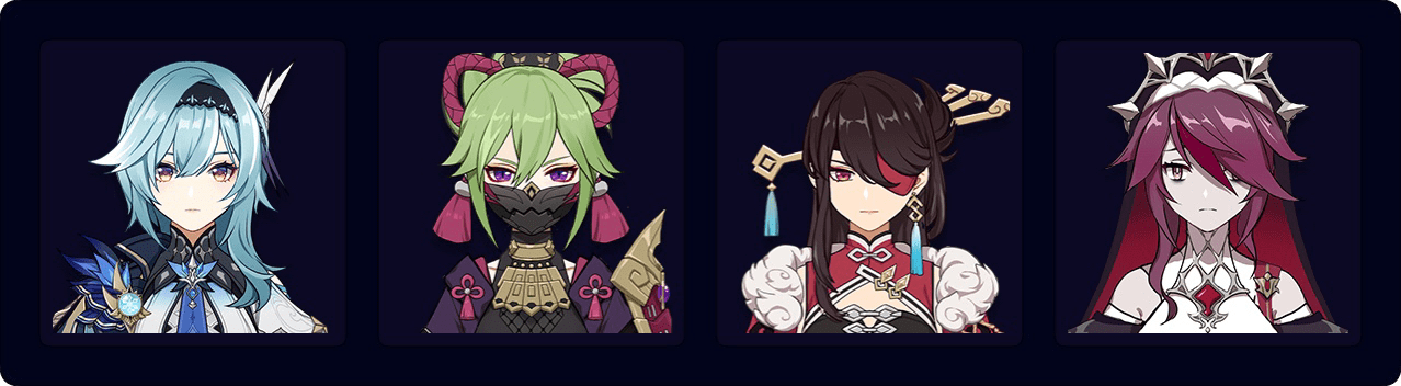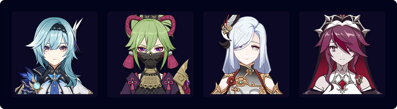 Yelan’s A4 buff is commonly overrated as both Eula and Raiden already have many DMG% buffs, and the team needs ATK% to the point where 4pc ToM Raiden can be optimal. However, damage is still damage, and Yelan’s buff works well with Eula’s back-loaded Burst and Raiden’s Burst following it. This team also is one of the best at breaking Elemental shields due to Yelan’s consistent Hydro application, which Eula teams can otherwise struggle against. Yelan’s rotations require Normal Attack weaving to maximize her Burst procs, and tight execution to maximize the damage.