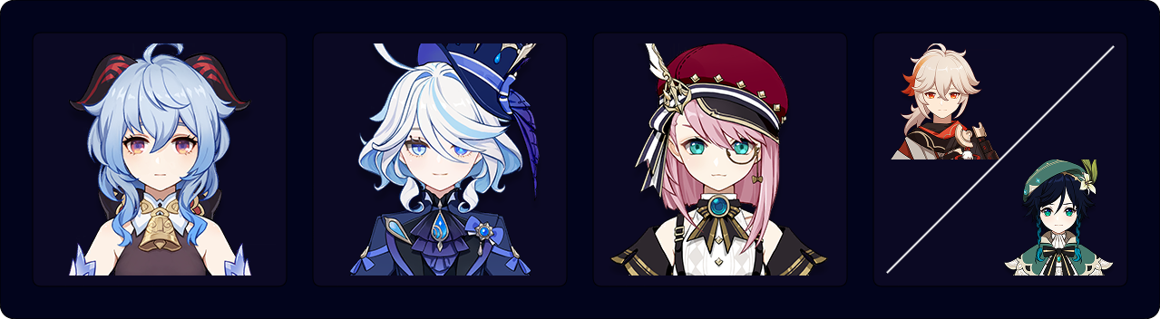 This team plays similarly to a traditional Ganyu Freeze team, using an Anemo unit to group enemies close together so that Ganyu can take advantage of her Burst’s AoE and its pseudo-quadratic scaling. Furina can take advantage of the grouping with her own AoE damage.