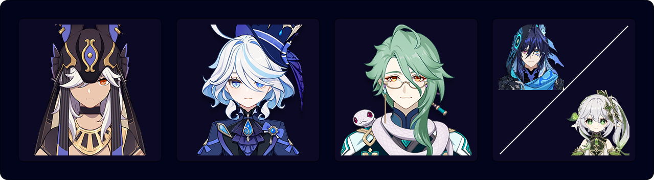 Furina ED > Nahida E Q > Furina Q > Baizhu EQ > Cyno EQ N1E 6[N4E]