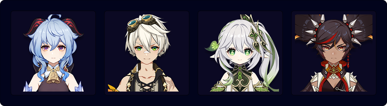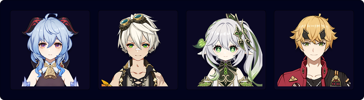 Ganyu — Bennett — Nahida — Dehya