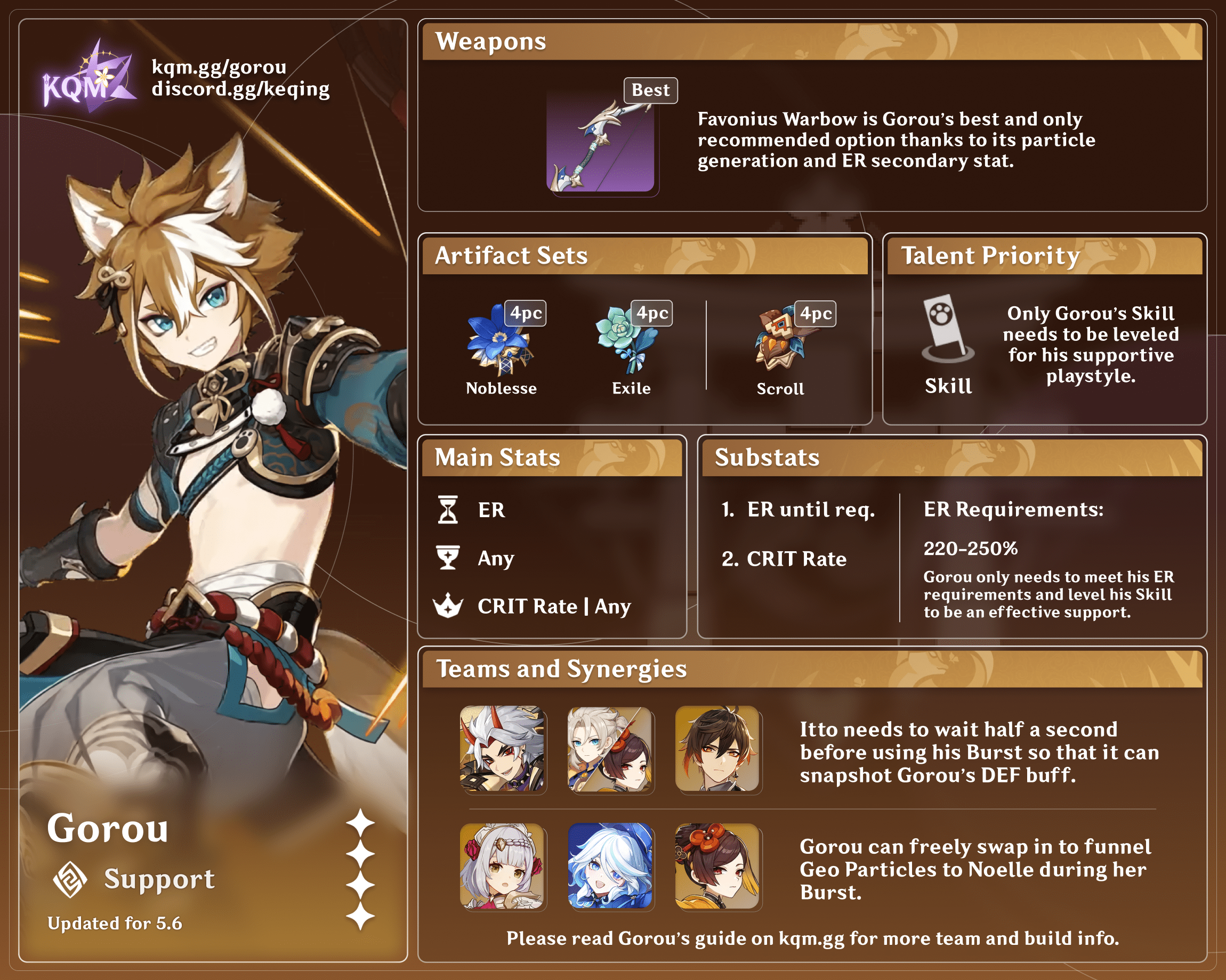This guide will cover the supportive playstyle his kit works best as; information involving on-field DPS Gorou is generally out of the scope of the guide.