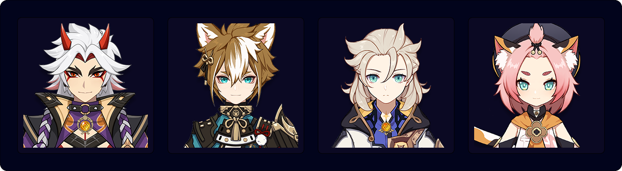 This team composition is the recommended go-to for Itto due to all the synergy it has. Itto appreciates the extra energy generated by having teammates of the same element, and Gorou’s buffs cap out at having 3 Geo members on the team. Albedo is highly recommended in the 3rd slot due to his consistent off-field damage alongside energy particles generation. The fourth slot is usually flexible, and does not require any particular unit, as Itto does not have anti-synergy with a majority of the cast due to the innate, non-reactive nature of the Geo element.