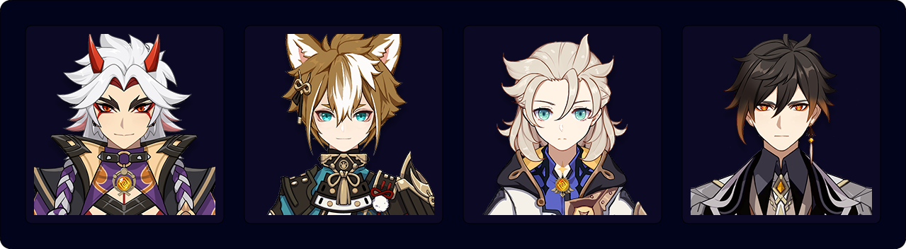 Albedo Role: Off-field DPS Ranking: S | Weapons: Cinnabar Spindle (BiS), Harbinger of Dawn, Favonius Sword Artifacts: 4-pc Husk of Opulent Dreams | Albedo is the best teammate in this slot, due to his strong synergy with Itto and Gorou. Offers consistent off-field DMG and Geo particles, and benefits from Gorou buffs and infinite uptime on Husk. Unfortunately, his BiS weapon, Cinnabar Spindle, is an event-exclusive sword, making his damage contribution lower without it. It is recommended to not use Albedo’s Burst in this team. |