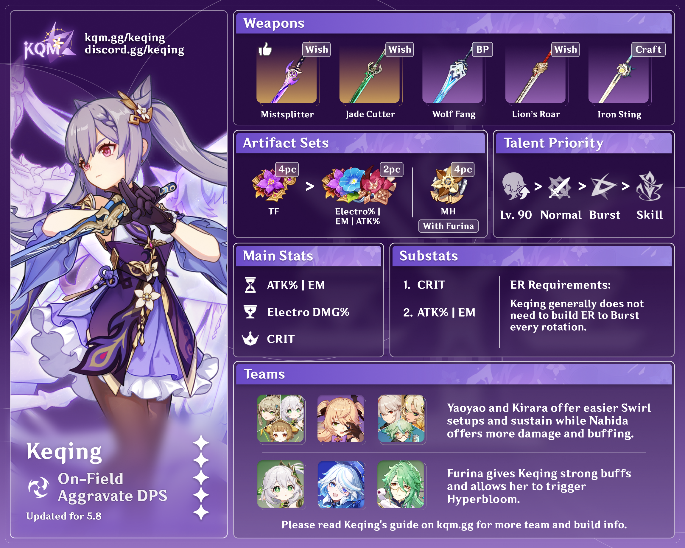 If you are here for a TLDR on how to build Keqing, you can refer to the following infographics (click to expand)
