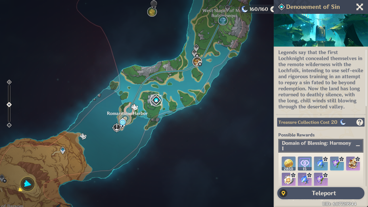 The new artifact sets are found in the Domain of Blessing called Denouement of Sin, located in Romaritime Harbor in Fontaine.