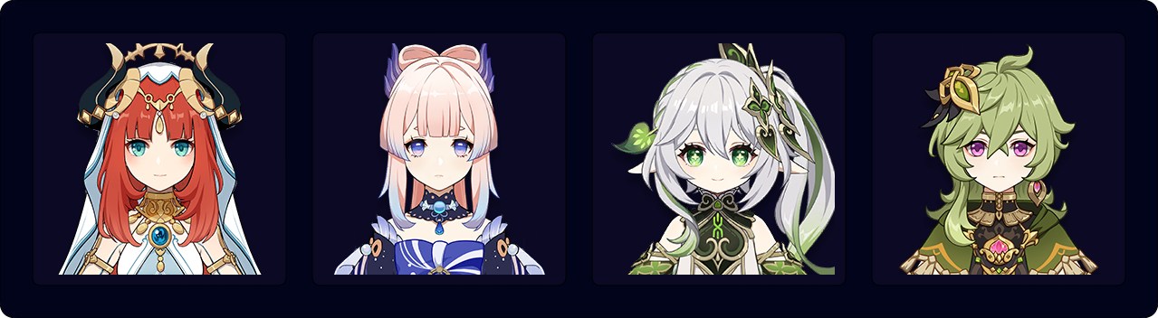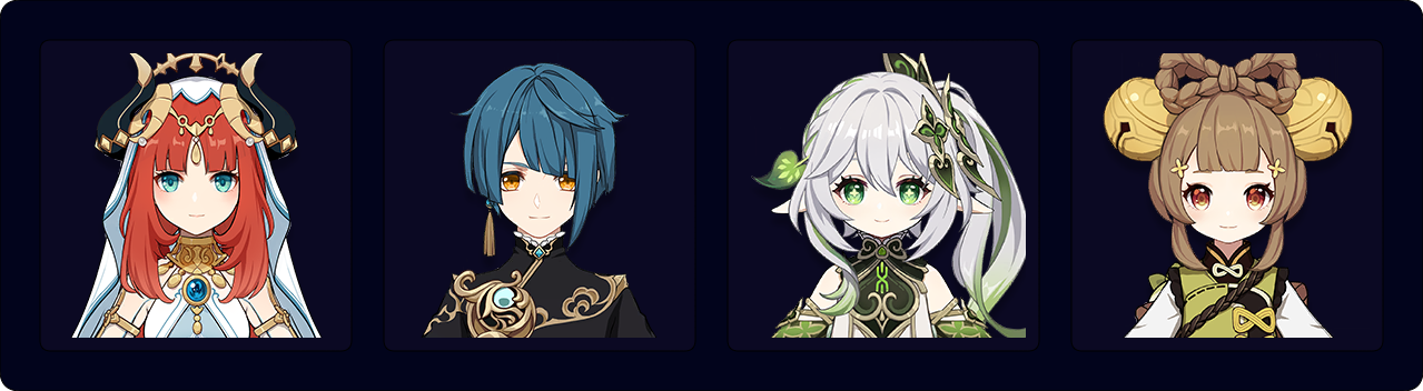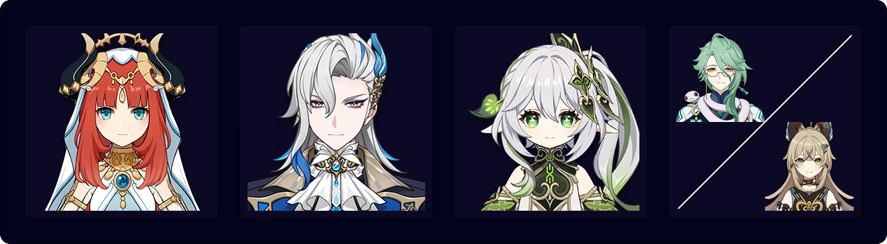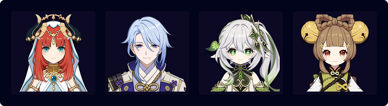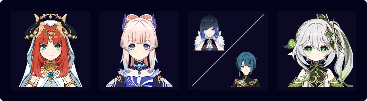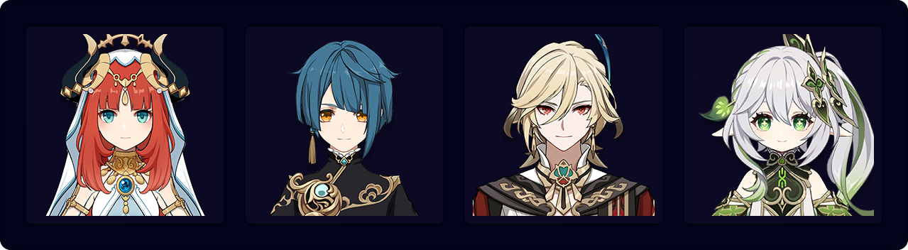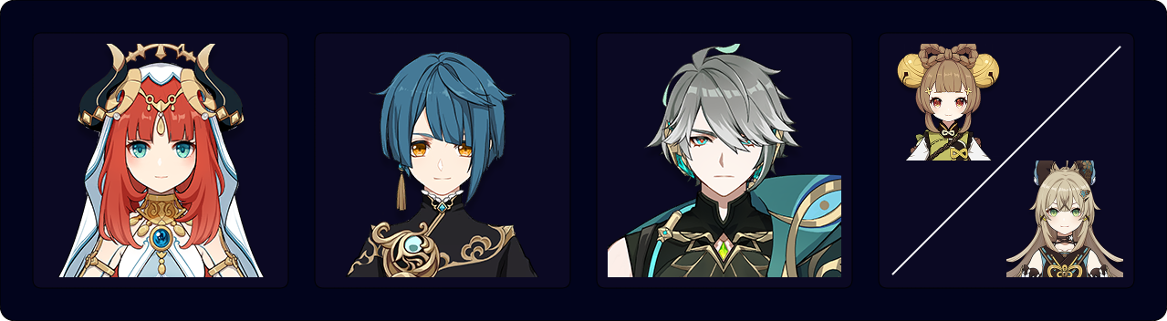 Nilou — Xingqiu — Alhaitham — Yaoyao / Kirara