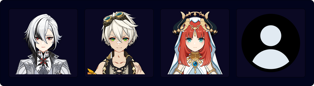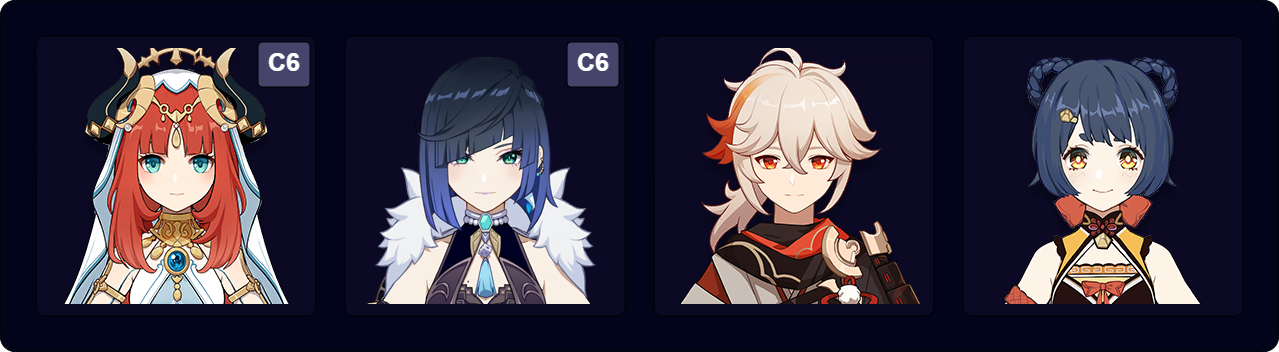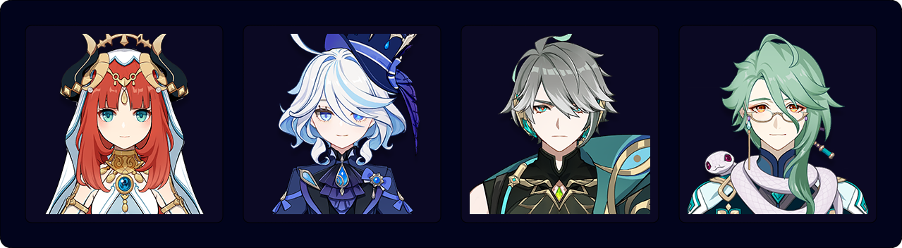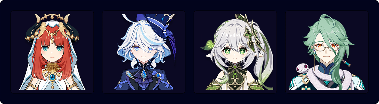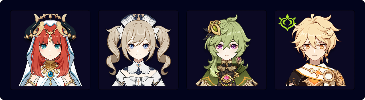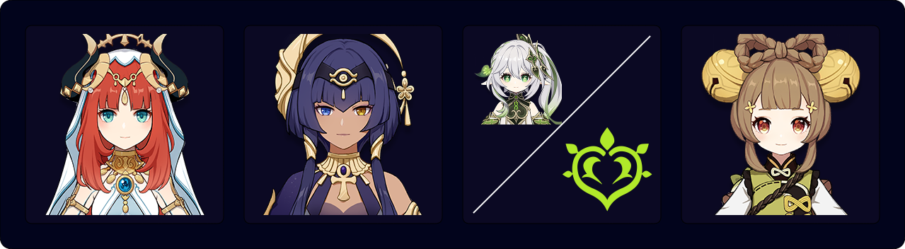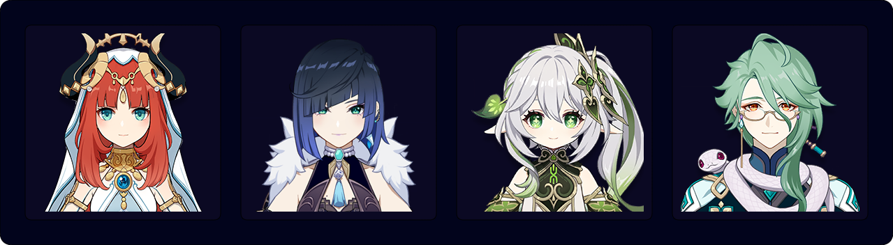 Nilou — Xingqiu — Alhaitham — Yaoyao / Kirara