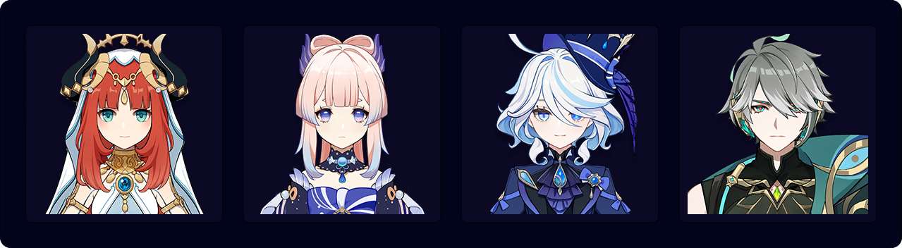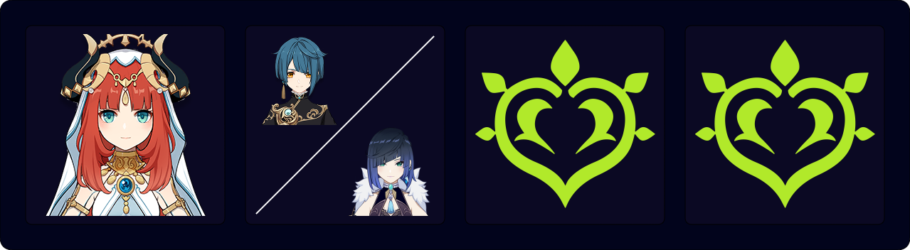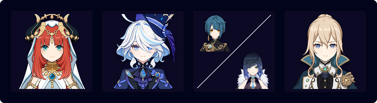 Nilou — Sigewinne — Xingqiu / Yelan / Furina — Nahida / Alhaitham