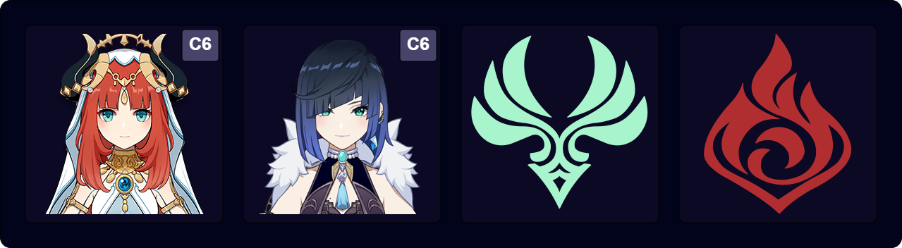 ![]() Yelan (C6) | C6 Yelan front-loads a significant amount of damage by Vaporizing her Skill and consecutively using her Mastermind Breakthrough Barbs. Yelan and Nilou both make good use of Yelan’s A4 Passive. |