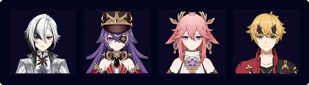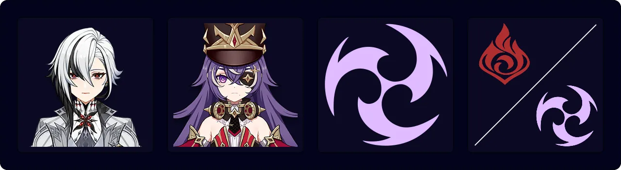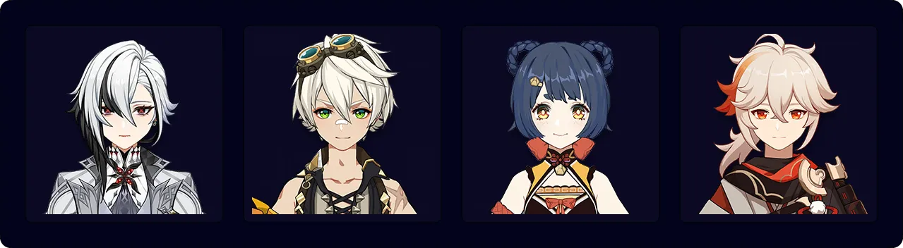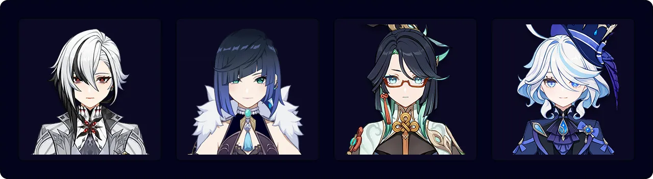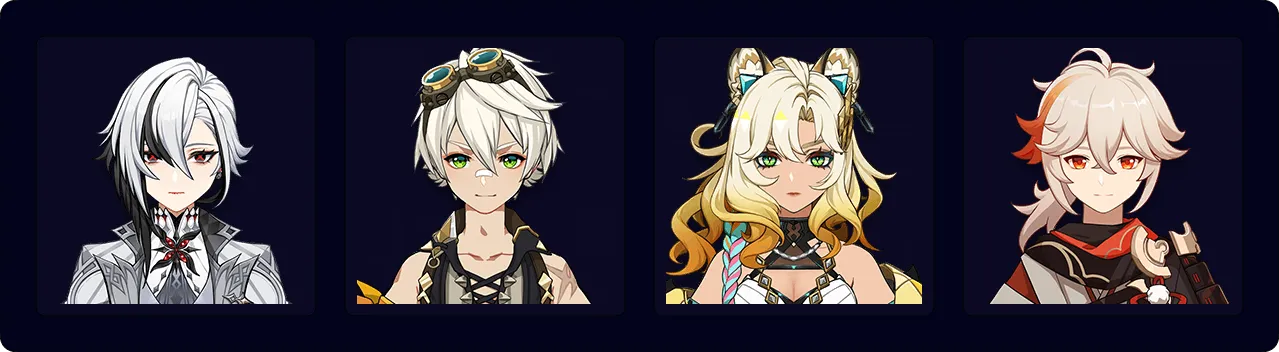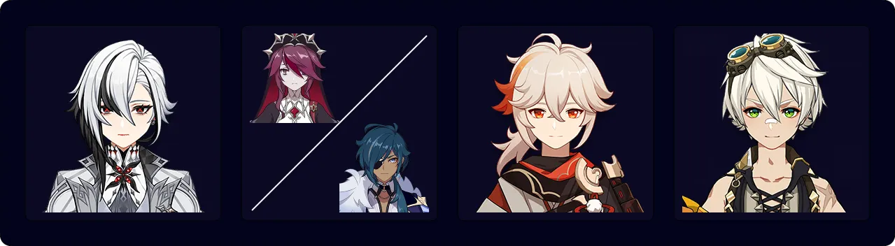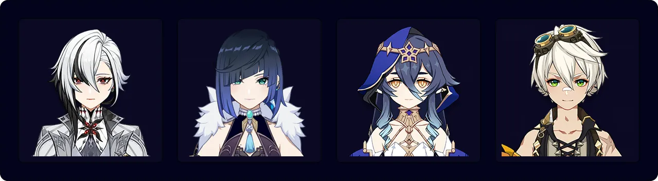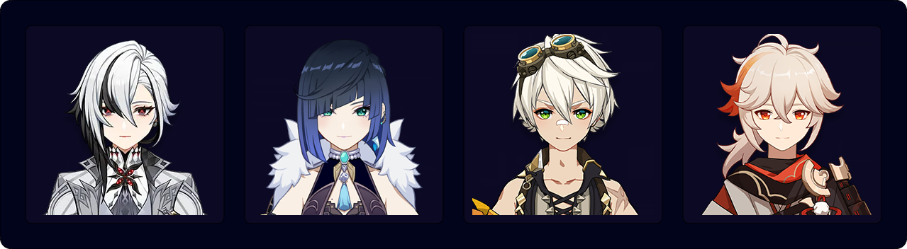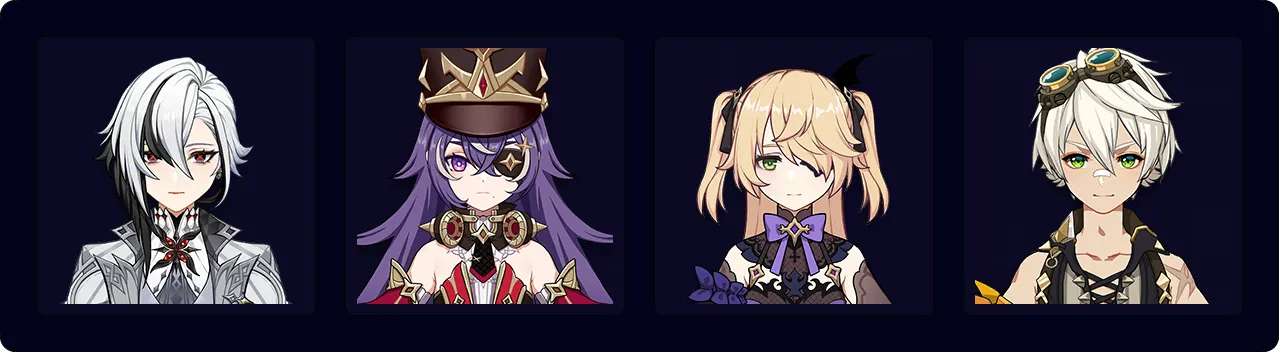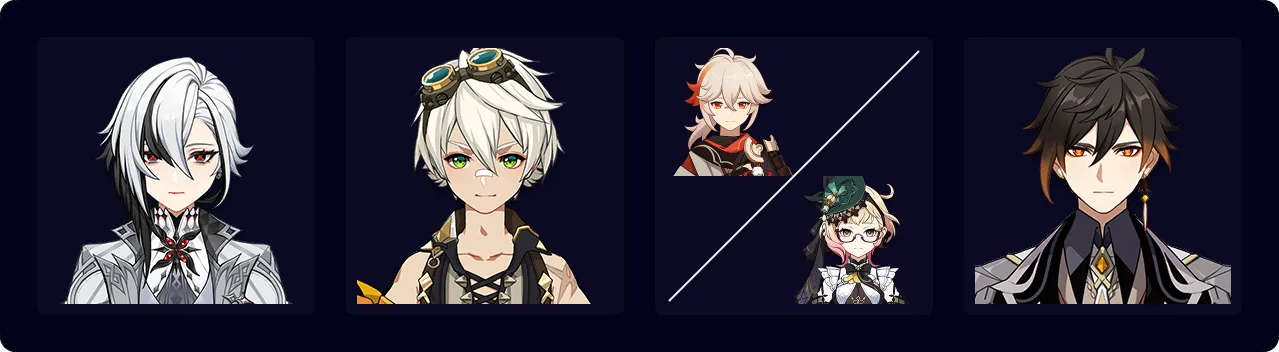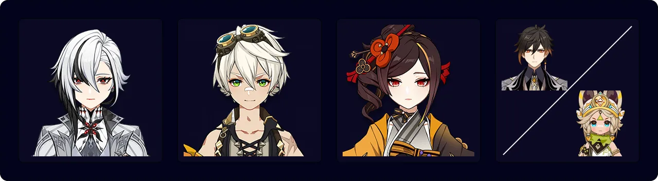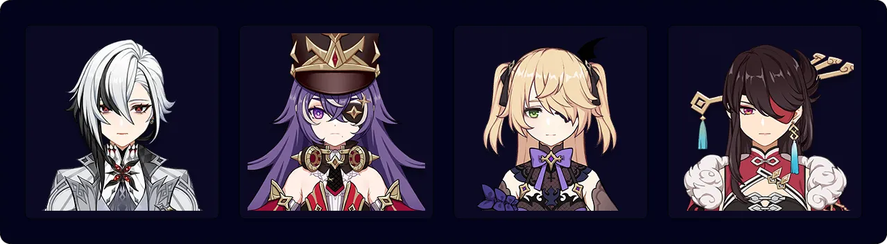 Fast off-field Hydro appliers allow Arlecchino to Vaporize a decent amount of her damage whilst also contributing their own off-field damage. The last two slots can be occupied by buffers, off-field damage dealers, or shielders according to preference.