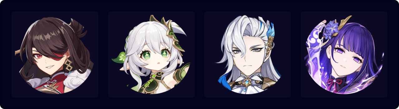 ![]() ★ Clorinde | ![]() ★ Cyno | ![]() ★ Lisa | ![]() ★ Yae Miko |