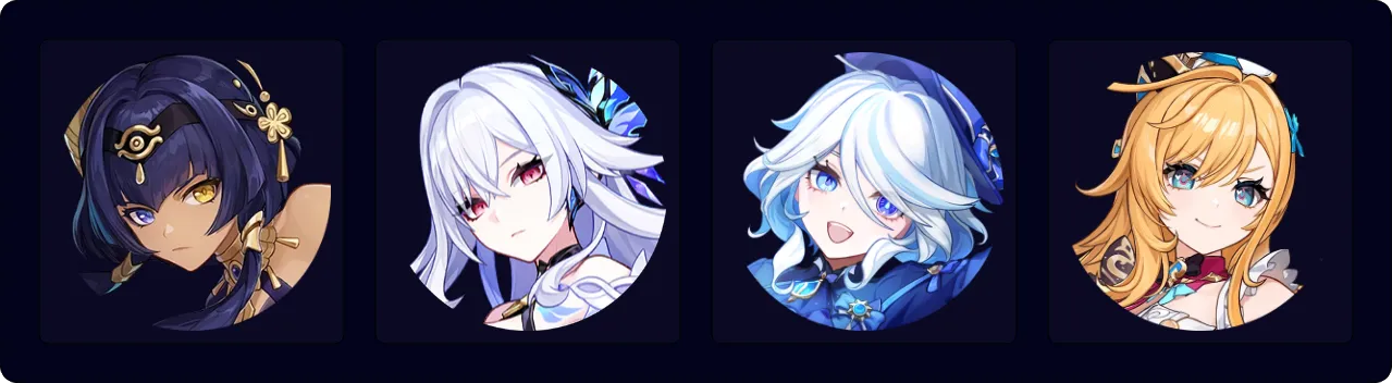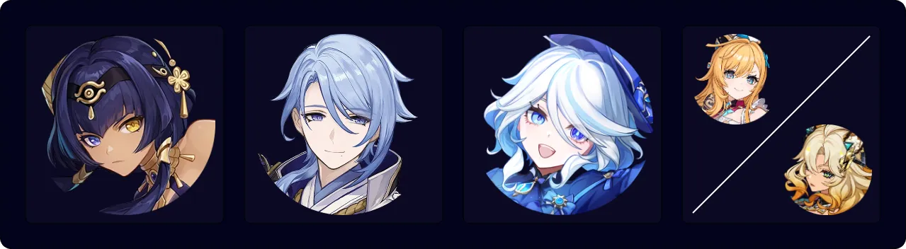 Furina ED Q > Xianyun EPQ > Xilonen E N2 > Candace EQ > (Xianyun N3)1 > Furina 8[JP] > Xilonen E N2 > Candace E N1