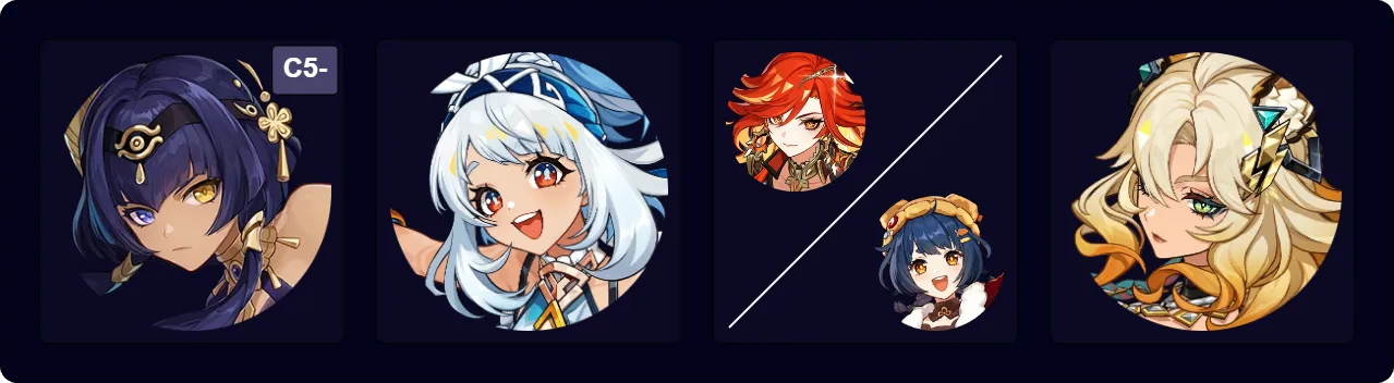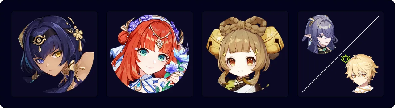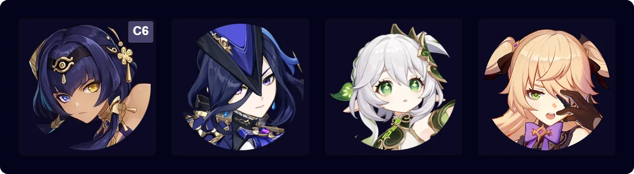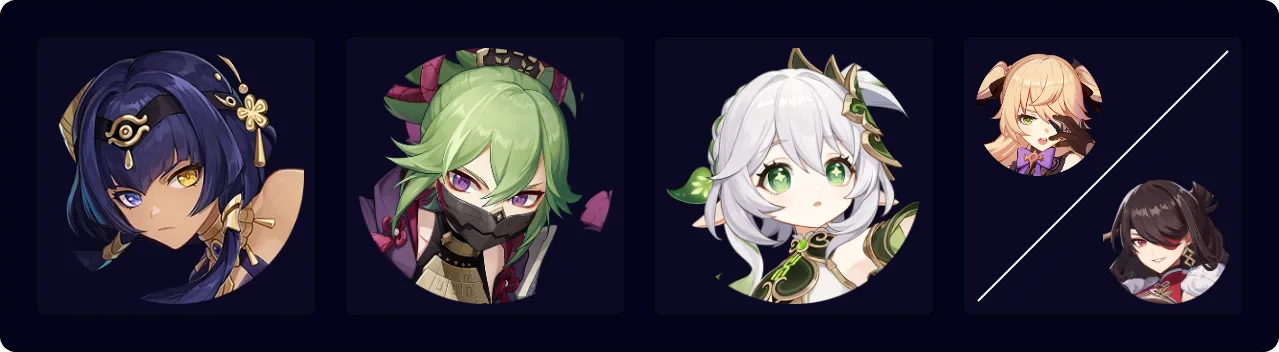 Nahida E Q > Fischl E/Q > Candace EQ N1 > Kuki N1 Q N1 E 2[N1C] > Candace E N1 > Kuki 2[N1C] N1