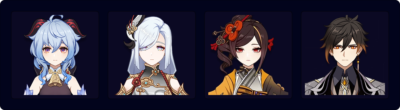 Ganyu C > Zhongli hED > Chiori (Q) 2[E] > Shenhe tEQ > Ganyu E Q 3[C] > Shenhe tE > Ganyu C E C