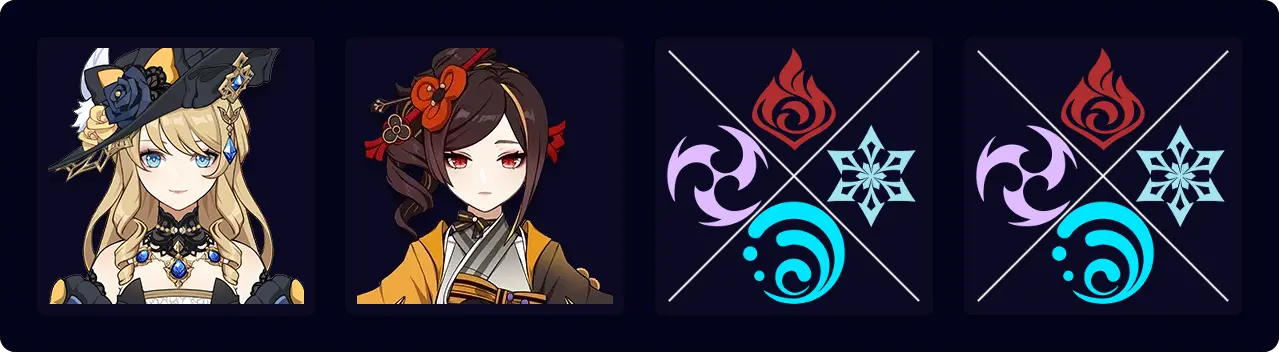 Navia benefits greatly from Chiori’s consistent Geo application and particle generation. However, Navia does not create a Geo Construct and strongly prefers two Pyro, Electro, Cryo, or Hydro teammates, which prevents another Geo teammate. Nonetheless, C0 Chiori is still great with Navia, and C1 Chiori only makes this pairing better.