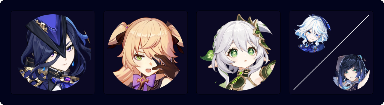 Opener: Fischl Q > Kirara shE > Sucrose EQ > Clorinde E Combo