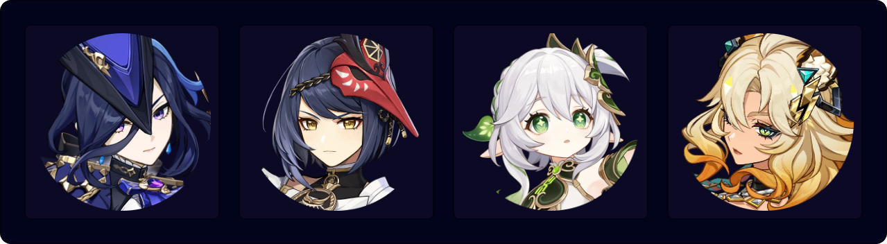 Nahida | Nahida is the premier offensive option for Clorinde’s Quicken teams, even when she is relegated to a supportive role. In addition, the strength of her Dendro application is necessary in order to maintain sufficient Quicken uptime in Quickbloom teams. Generally, Nahida should build full EM if using Wandering Evenstar or when played in Quickbloom; otherwise, she can build for her personal damage, even if wearing a support set. |