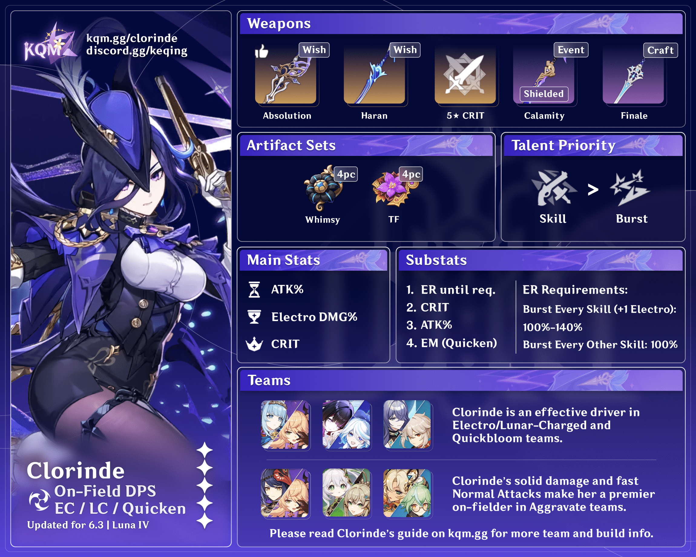 ¹If Chevreuse is C4+ and your ping allows, you can perform Sara C > Chevreuse hE N1 > Clorinde Q instead. This will funnel Sara’s, Cheveruse’s and Fav particles to Clorinde and substantially reduce her ER requirements.