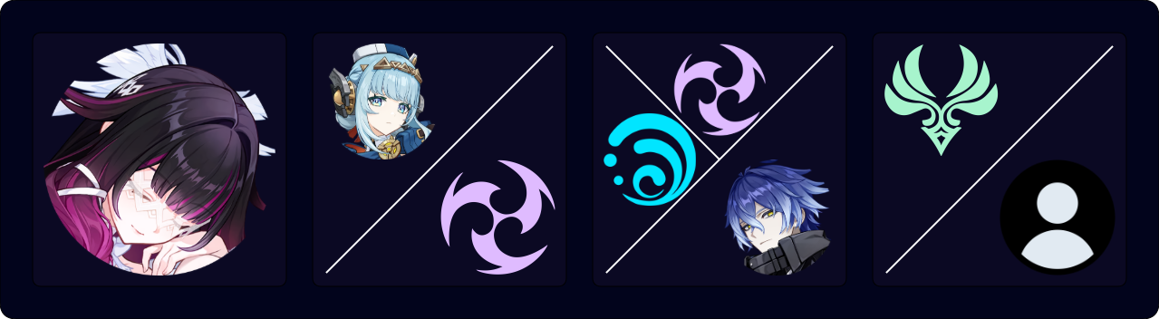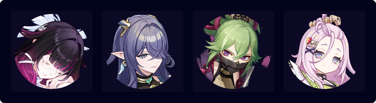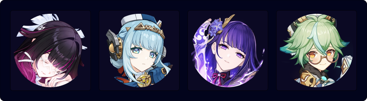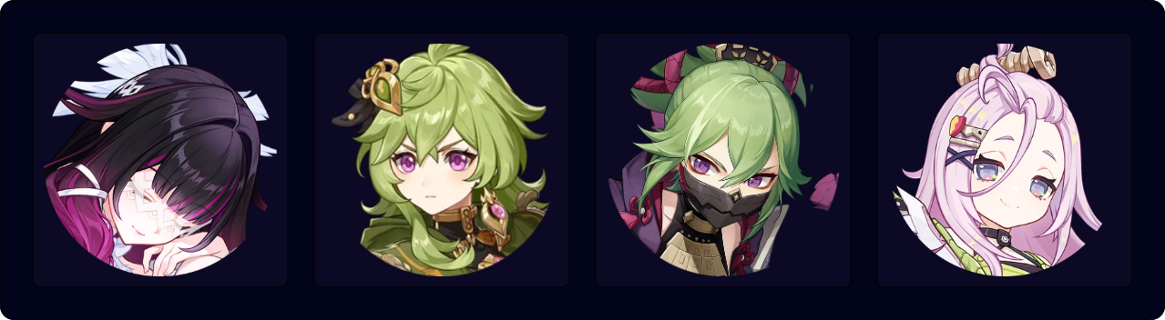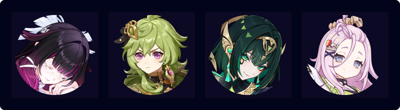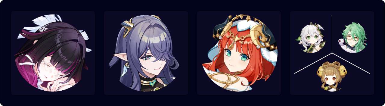 Collei EQ > Aino Q E > Columbina Q (N1-3)¹ E > Nefer E 3[CD] E 3[CD] (Q)²