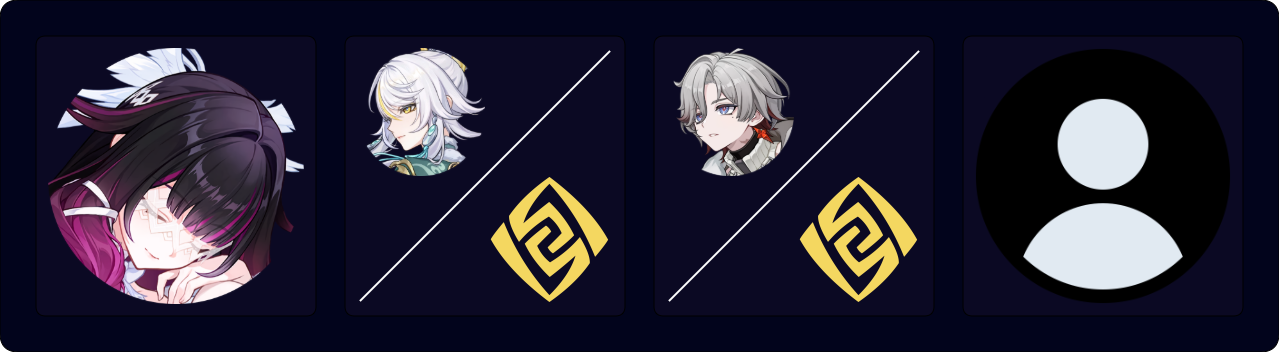 Aino Q E > Columbina E (Q)¹ > Fischl N1 E/Q > Lan Yan 2[E] (Q)¹ N3D spam²
