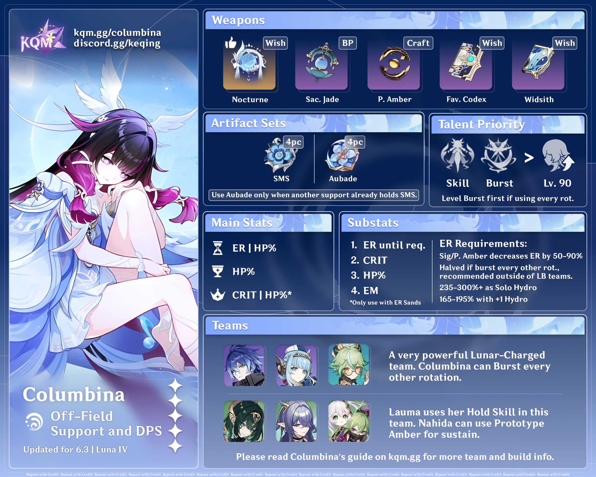 Columbina E Q > Nahida E Q N1 > Nilou E N2 E > Lauma hE Q > Columbina 4[CD] C