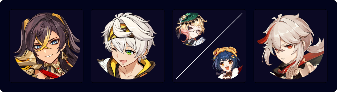 Dehya 2[E] > Kazuha tEPQ > Bennett Q E > Xiangling Q E > Kazuha tEP > Bennett E > Dehya Q combo > Bennett E