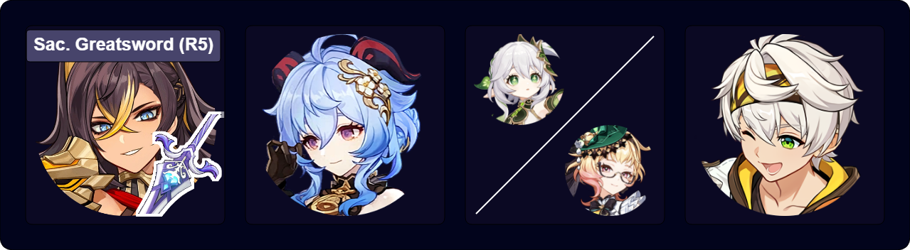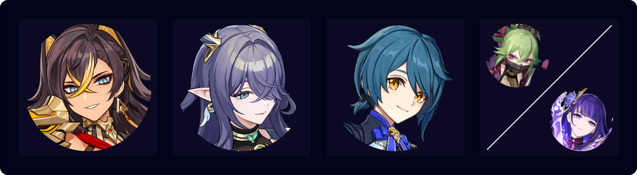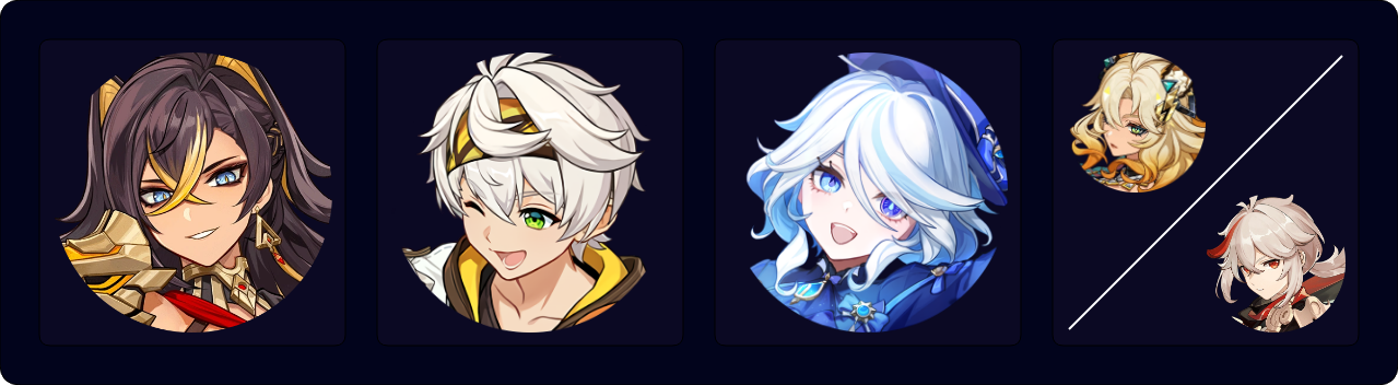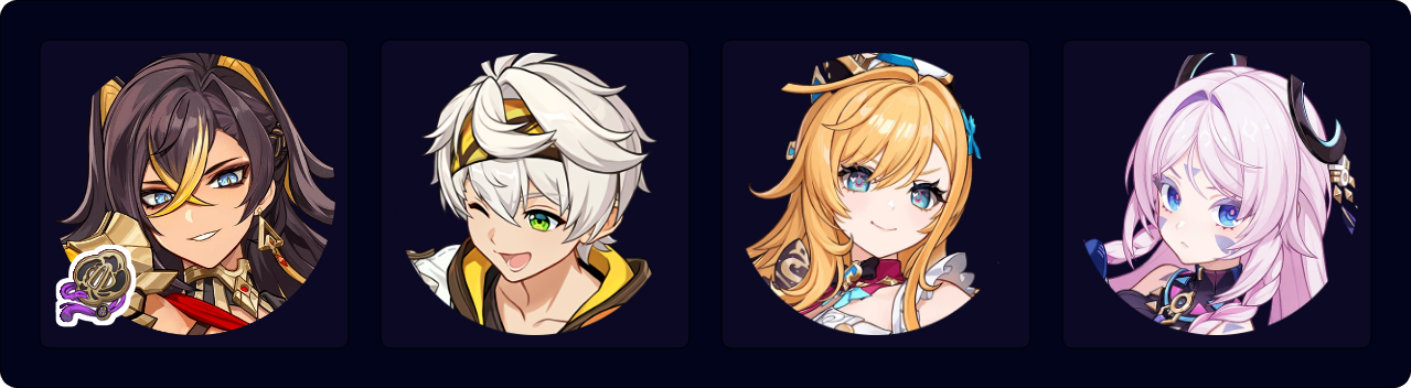 (Dehya E)¹ > Furina ED Q > Xianyun EPQ > Bennett EQ N1 > Xianyun N3 > Dehya 7[JP] E > Bennett E
