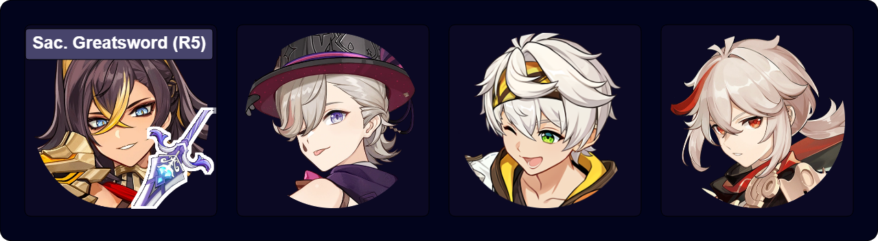 ![]() 4★ Favonius Greatsword | Favonius Greatsword reduces Dehya’s ER requirements by approximately 15% per proc. At higher refinements, Dehya can trigger its effect multiple times while on-field, allowing her and her teammates to build more offensive stats due to decreased ER requirements. In teams with high ER requirements, Favonius Greatsword can become one of Dehya’s strongest options for team damage, rivaling and even outperforming 5-star CRIT weapons. |