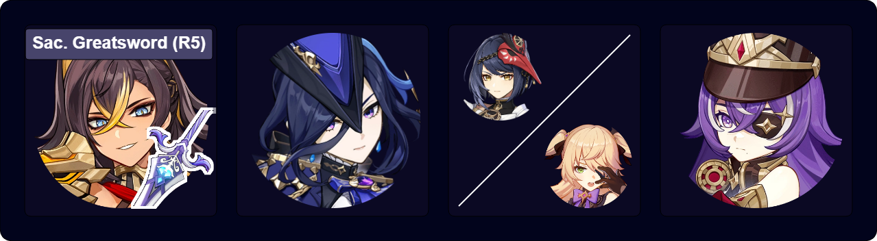 ![]() Escoffier | Escoffier is a strong single-target damage dealer who, with additional Cryo application from a second unit, allows Dehya to Melt her Burst hits. Her team with Citlali rivals Furina’s Vaporize team. |