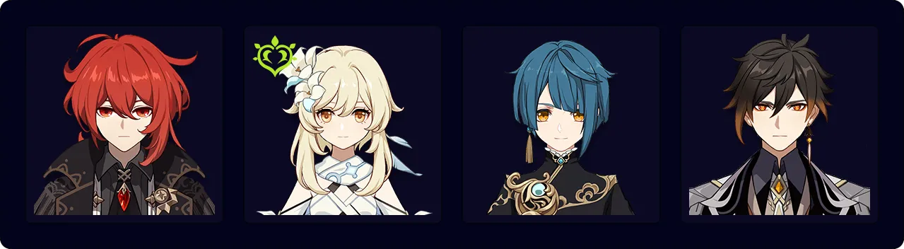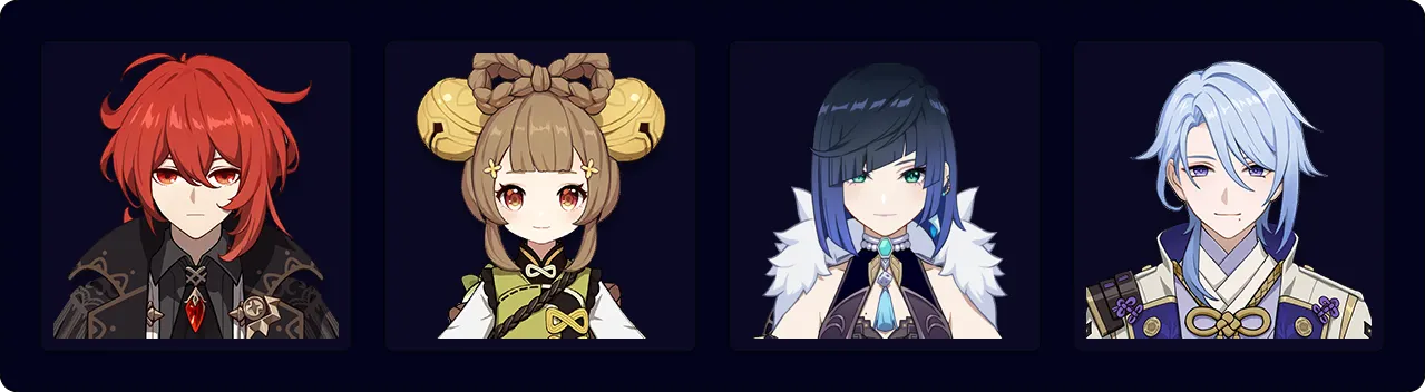 ![]() Flex (optional): Zhongli, Albedo, Fischl, Beidou, Anemo Traveler, Jean, Diona, Layla, Sayu, Kokomi | As long as a Hydro or Cryo aura is maintained on the enemy, any remaining flex slot(s) can be filled by practically anyone. A shielder is useful for maintaining uptime on certain weapon passives. Albedo can be paired with Zhongli to form a double Geo core. Pairing Jean and Bennett together is not recommended, since the extra Pyro application from the Sunfire interaction can interfere with desired reactions. Electro teammates can allow for a combination of Vaporize and Overload. |