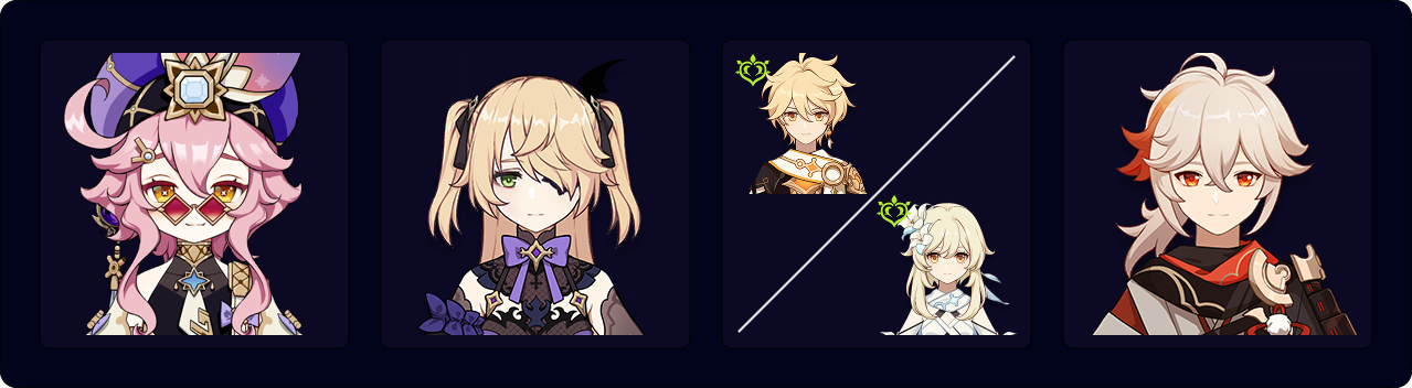 ![]() ![]() Kazuha/Sucrose | Kazuha and Sucrose are the best options for the last slot—they provide Electro RES Shred via 4p Viridescent Venerer, offer further buffs through their kit, and can deal significant personal damage with Aggravated Electro Swirls. |