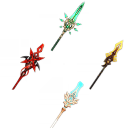 ![]() Tamayuratei no Ohanashi | The lastest 4-star event polearm. While Emilie can utilize its ER secondary stat, its passive will have limited uptime in most of her teams, making it very situational. |
