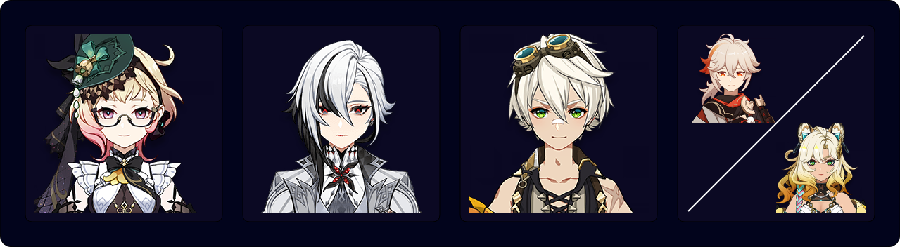 Arlecchino E > Bennett EQ > Emilie Q1/E > Kazuha tEP(Q)1 > Arlecchino C 5[N3D] N3